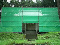 神田があったことは竜毛に八幡田という字名が存することでわかる。 この後、山田氏の家臣であった金子氏の子孫をはじめ大木・石川・伊藤・児玉以上6家の崇敬があって八幡館(山田館・喜方館)から享保12年11月現在地に遷し、八幡宮と称していた。 佐竹藩に代ってから地頭山方民部より古来の由緒を以て祭祀料や社殿修改築資金の寄進があったが、桃園天皇の宝暦年間になって山方氏の寄進は絶えてしまった。 現在の社殿は大正6年3月改築工事に着手、翌年4月に竣工している。 <配祀 石川理紀之助翁について> 時に翁は66歳。 大正4年9月8日享年71歳で帰幽、暫く時経てから相殿に配祀した。 昭和16年5月例祭時に木像盗難を発見、現在の木像は花岡泰雲作。 昭和47年9月7日霊璽として奉拝、相殿に安置した。 |